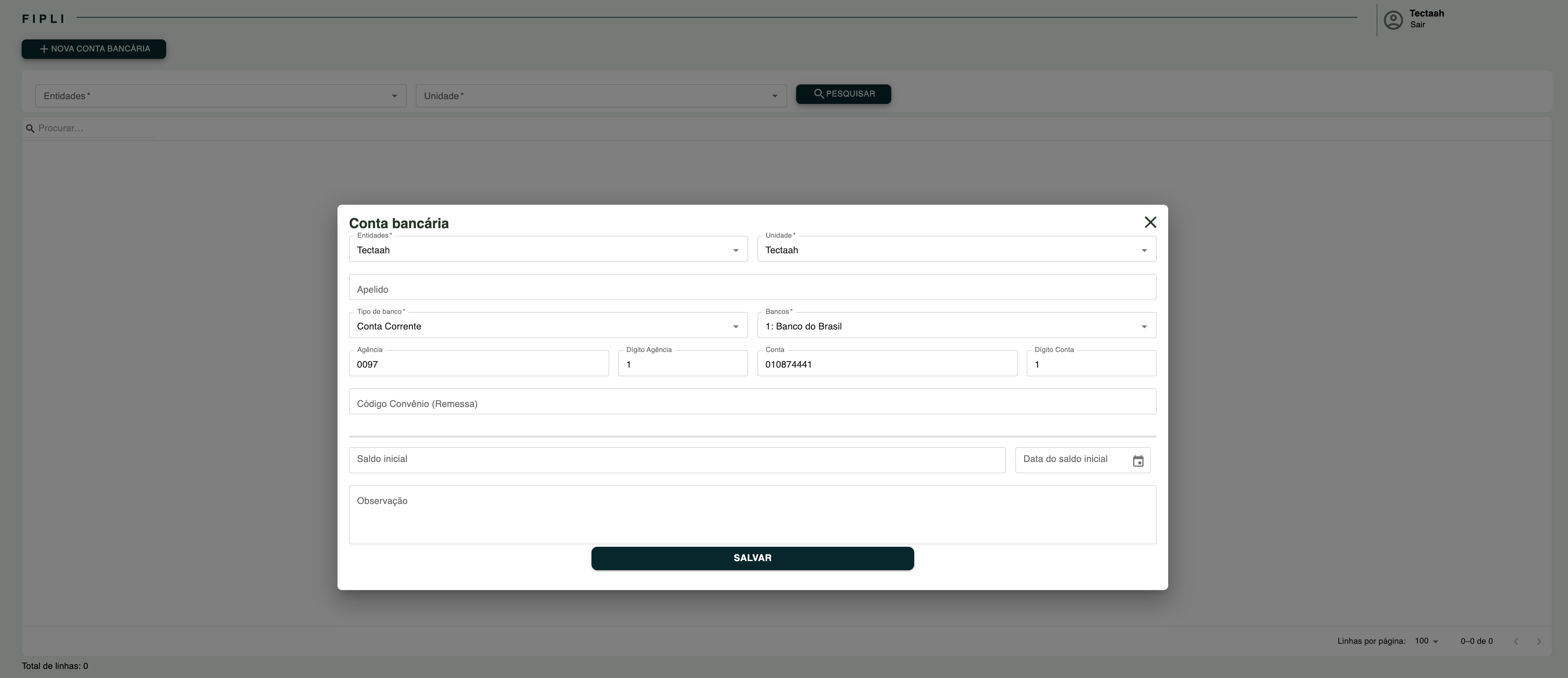 A gestão de contas bancárias permite administrar todas as contas cadastradas no sistema, facilitando o acompanhamento de saldos, movimentações e transferências. Com essa funcionalidade, é possível registrar diferentes contas, gerenciar operações financeiras e obter uma visão consolidada dos recursos disponíveis.
